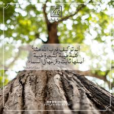 (أَلَمْ تَرَ كَيْفَ ضَرَبَ اللّهُ مَثَلاً كَلِمَةً طَيِّبَةً كَشَجَرةٍ طَيِّبَةٍ أَصْلُهَا ثَابِتٌ وَفَرْعُهَا فِي السَّمَاء تُؤْتِي أُكُلَهَا كُلَّ حِينٍ بِإِذْنِ رَبِّهَا)