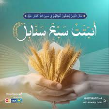 قال الله تبارك وتعالى في محكم كتابه المجيد في أواخر سورة البقرة(مَّثَلُ الَّذِينَ يُنفِقُونَ أَمْوَالَهُمْ فِي سَبِيلِ اللّهِ كَمَثَلِ حَبَّةٍ أَنبَتَتْ سَبْعَ سَنَابِلَ فِي كُلِّ سُنبُلَةٍ مِّئَةُ حَبَّةٍ وَاللّهُ يُضَاعِفُ لِمَن يَشَاء وَاللّهُ وَاسِعٌ عَلِيمٌ)
