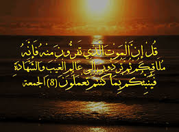قال سبحانه وتعالى في سورة الجمعة(قُلْ إِنَّ الْمَوْتَ الَّذِي تَفِرُّونَ مِنْهُ فَإِنَّهُ مُلَاقِيكُمْ ثُمَّ تُرَدُّونَ إِلَى عَالِمِ الْغَيْبِ وَالشَّهَادَةِ فَيُنَبِّئُكُم بِمَا كُنتُمْ تَعْمَلُونَ)