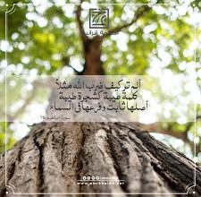 مَثَلُ الكلمة الطيبة قال سبحانه في سورة إبراهيم(أَلَمْ تَرَ كَيْفَ ضَرَبَ اللّهُ مَثَلاً كَلِمَةً طَيِّبَةً كَشَجَرةٍ طَيِّبَةٍ أَصْلُهَا ثَابِتٌ…